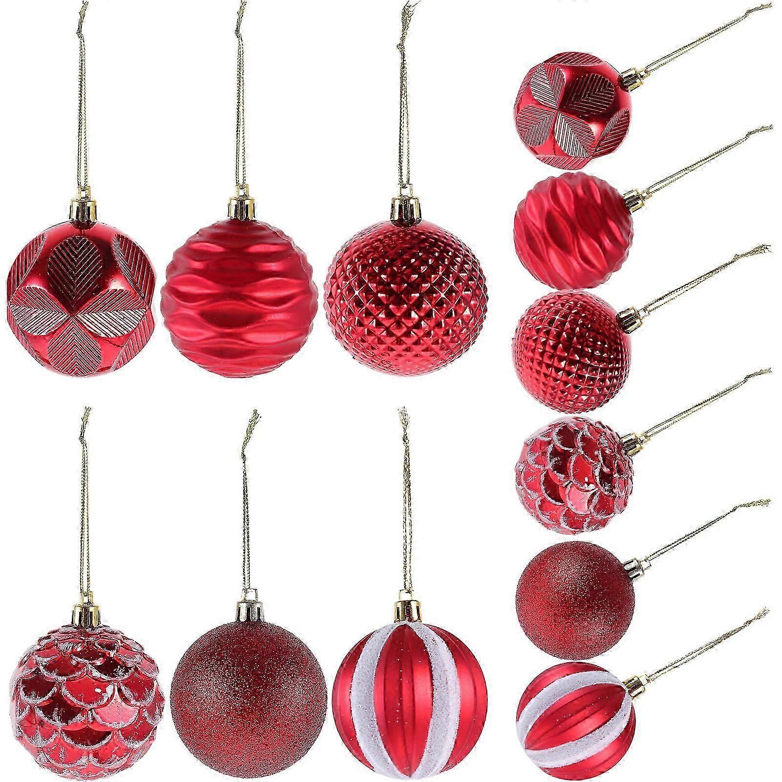 Red Shatterproof Baubles With Hanging Loop For Christmas Tree Decoration Holiday Indoor Outdoor 12Pcs