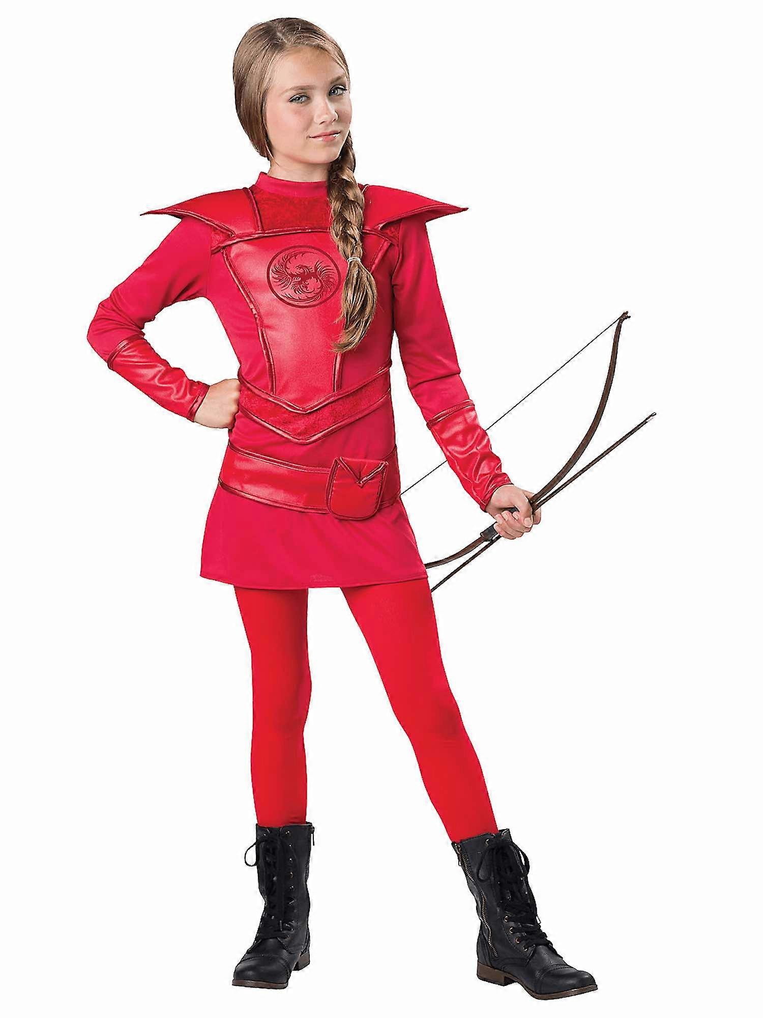 Red Warrior Huntress Medieval Archer Katniss Hunter Tween Girls Costume