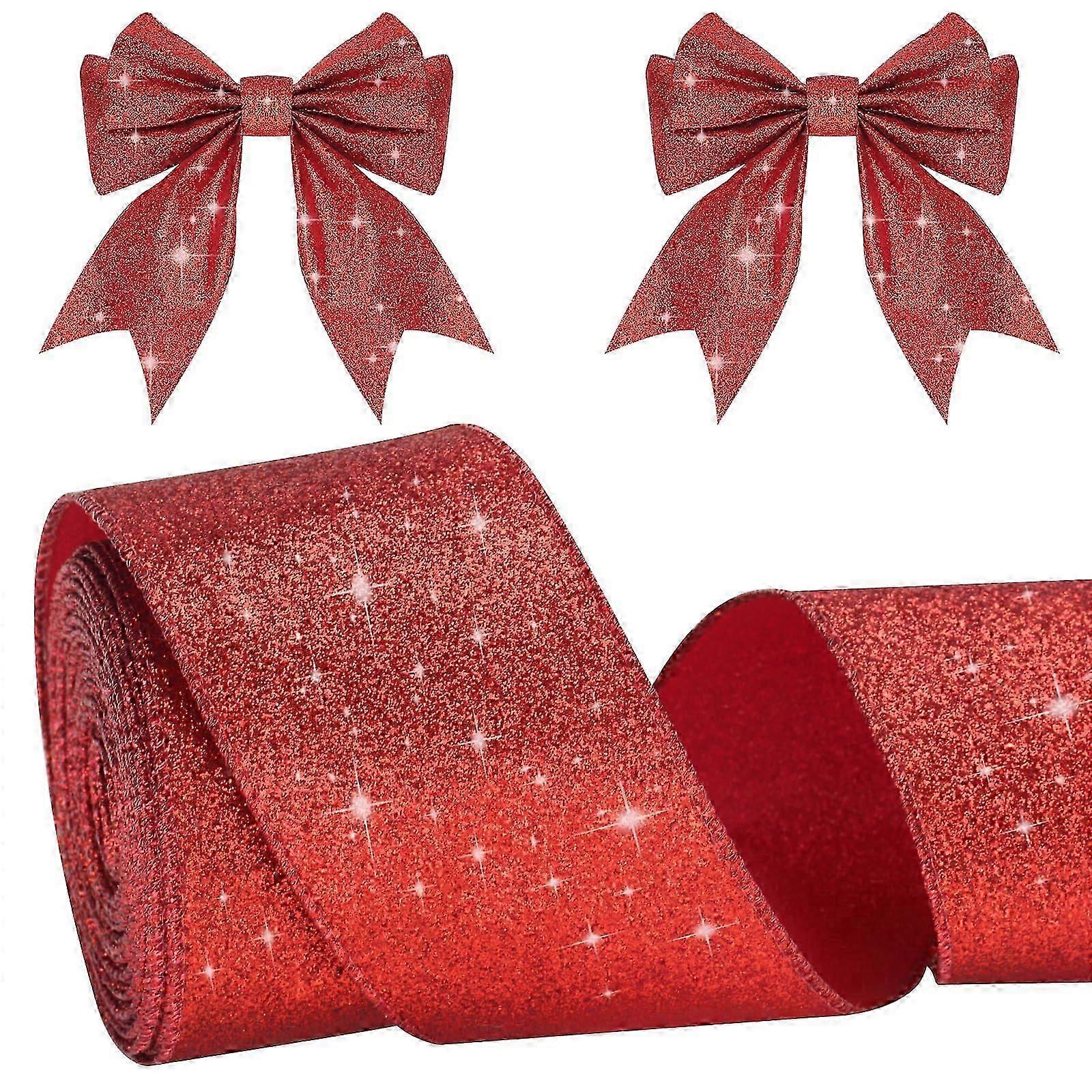 Red wired ribbon, 5cm shiny Christmas ribbon for gift wrapping, 10m decorative ribbon for gifts, shiny metallic ribbon for gift wrapping