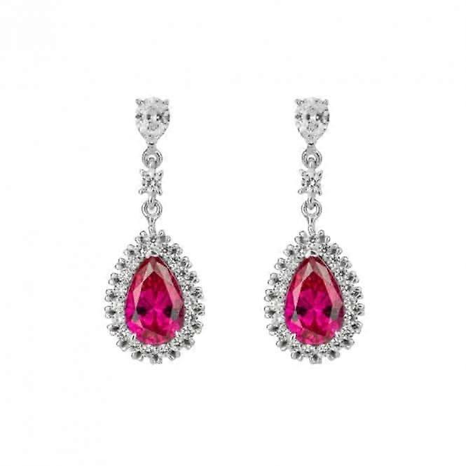 Red Zirconia Teardrop Pave Surround Earrings E6193