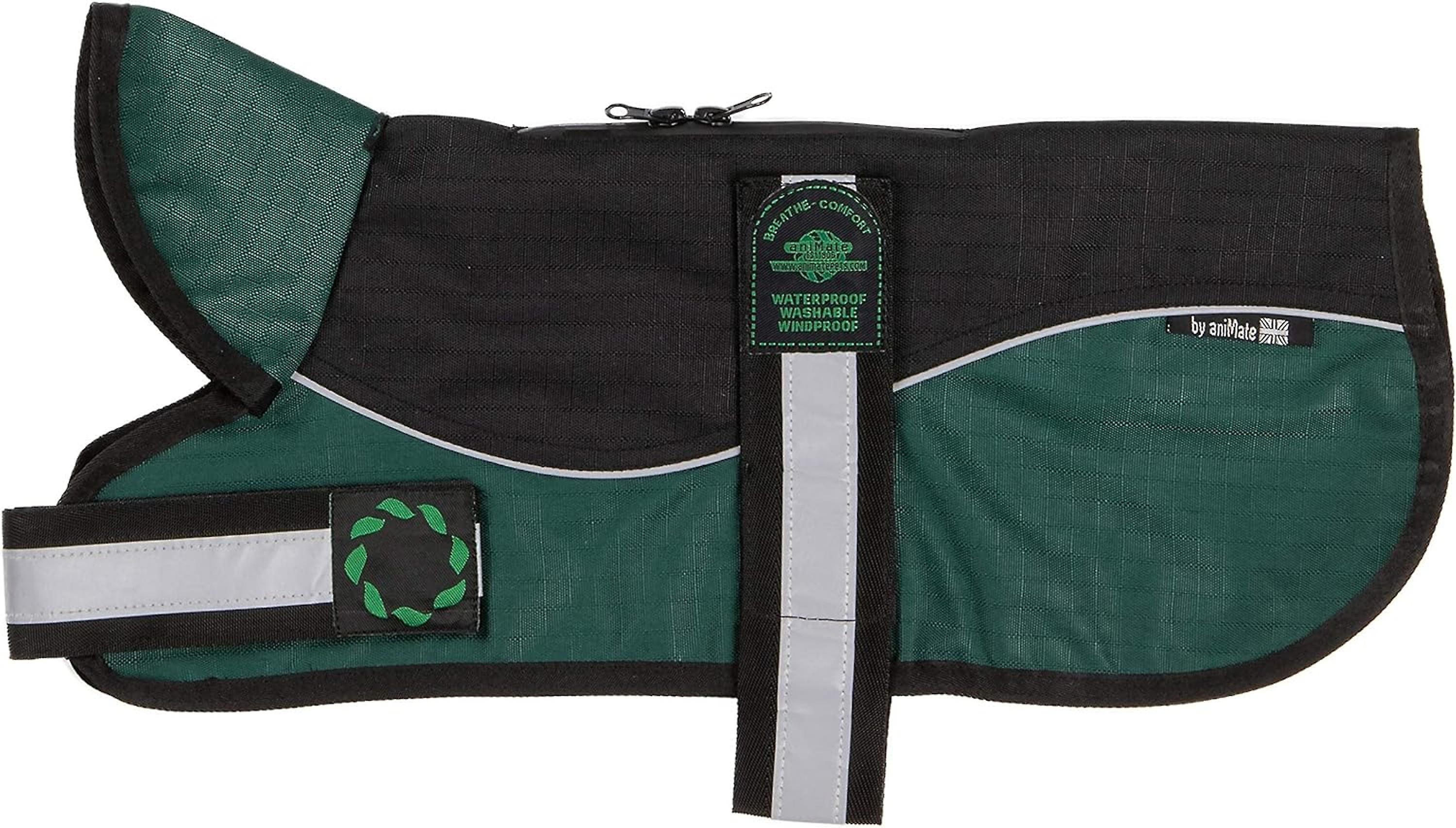 Reflective Black/Green Unpadded Harness Dog Coat Plus Collar 20" (51cm)