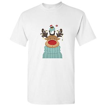 Reindeer Deer Penguin Christmas Cartoon Art Men White T Shirt Tee Top