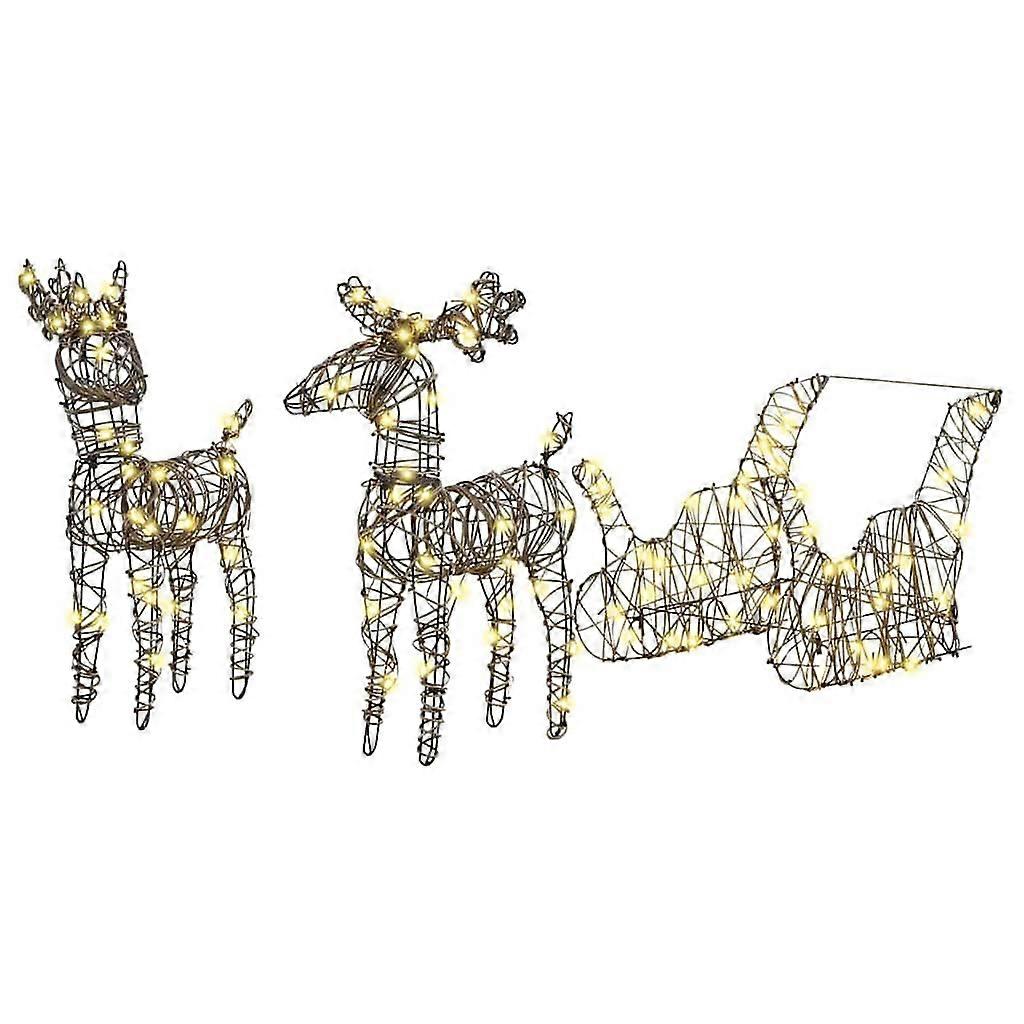 Farbe: Warmes WeißMaterial: RattanGesamtabmessungen: 52,5 x 28 x 32,5 cm (L x B x H)Lichttyp: Dekorative LichterkettenAnzahl der LEDs: 160Stromquelle: USBLanglebigInnen- / Außenbereich: Für Innen- und AußenbereichLieferumfang:1 x Rentier zieht SchlittenMontage erforderlich: Ja Dieses Produkt wird mit 5 V Gleichstrom betrieben, aber die zertifizierte 5-V-USB-Stromquelle ist nicht im Lieferumfang enthalten. Eine höhere Spannung kann zu einer Überhitzung führen und das Gerät beschädigen sowie das Risiko von Überhitzung und Brand verursachen.