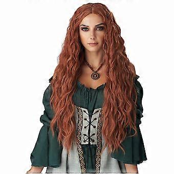 Renaissance Maiden Medieval Princess Auburn Long Wavy Womens Costume Wig