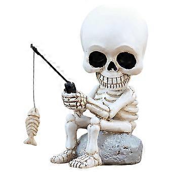 Resin Fishing Skull Outdoor Patios Decoration Home Patios Yard Pond Resin Sculpture for Halloween Party Prop