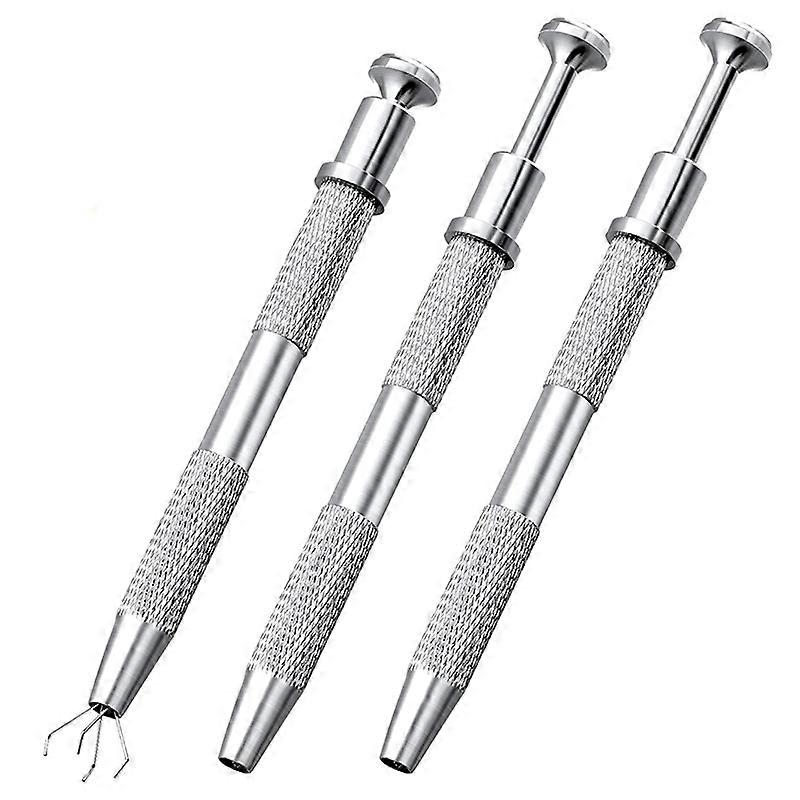 Retail 3 Pack Stainless Steel 4-Claw Pick Up Tool, 4 Prongs Grabber For IC Chip, Electronic Components, Silver