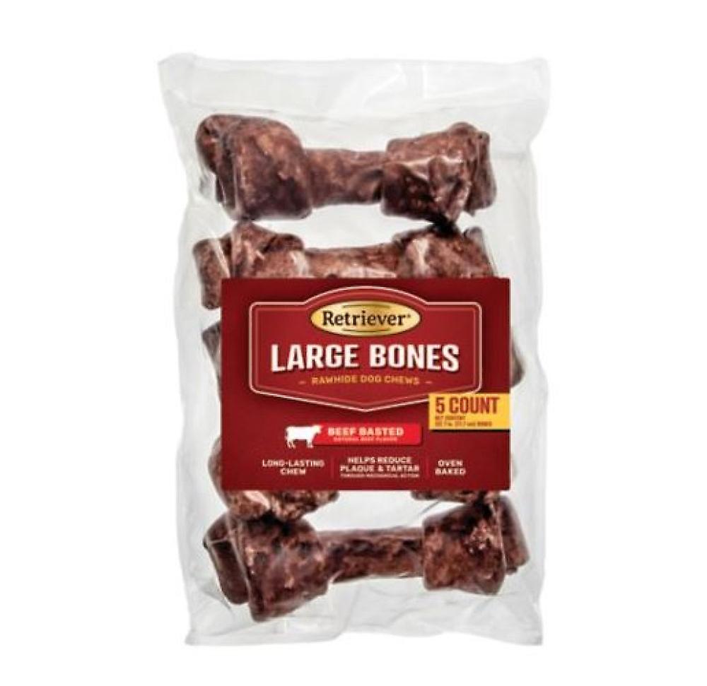 Retriever Large Bones 482TSC 7" Natural Beef Basted Rawhide Dog Chews - 5 Count