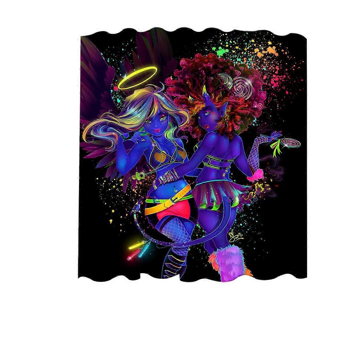 Retro Colored Sexy Angel and Devil Shower Curtain