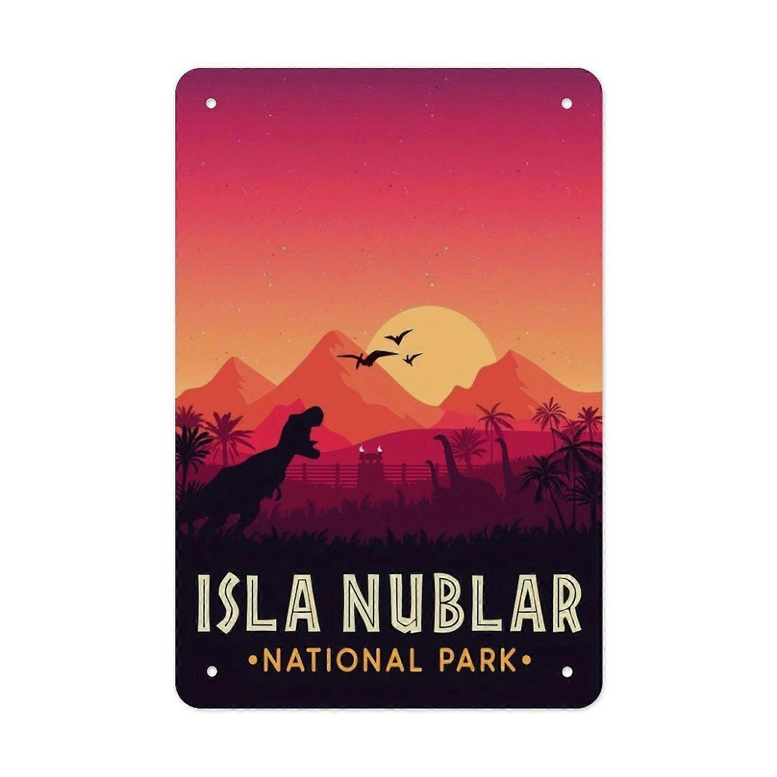 Retro Dinosaur Landscape Metal Tin Sign, Sunset National Park Style Iron Wall Decor for Living Room Bedroom Outdoor Theme