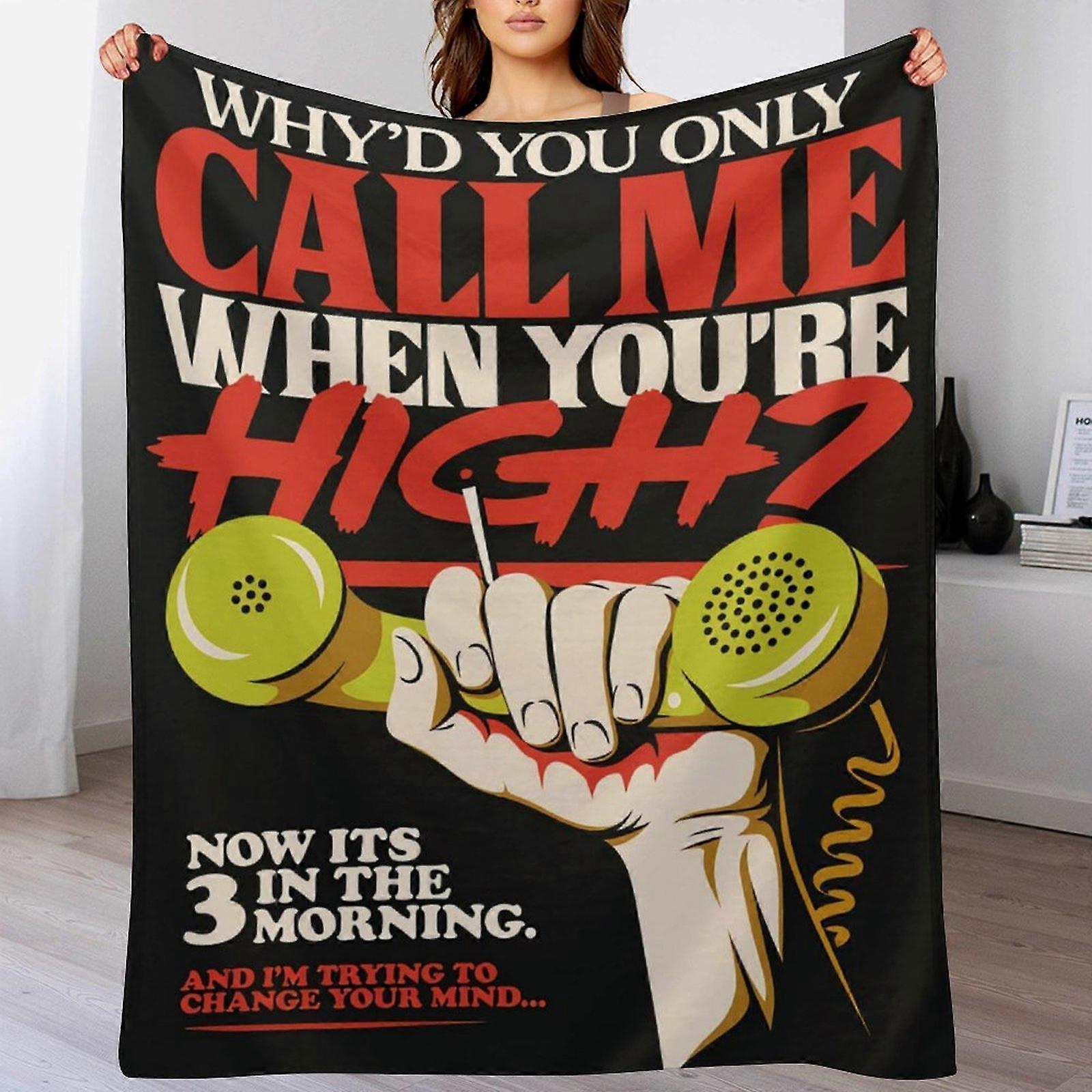 Retro Phone Graphic with Funny Late Night Call Quote Printed Throw Blanket Cozy Home Decor for Adults