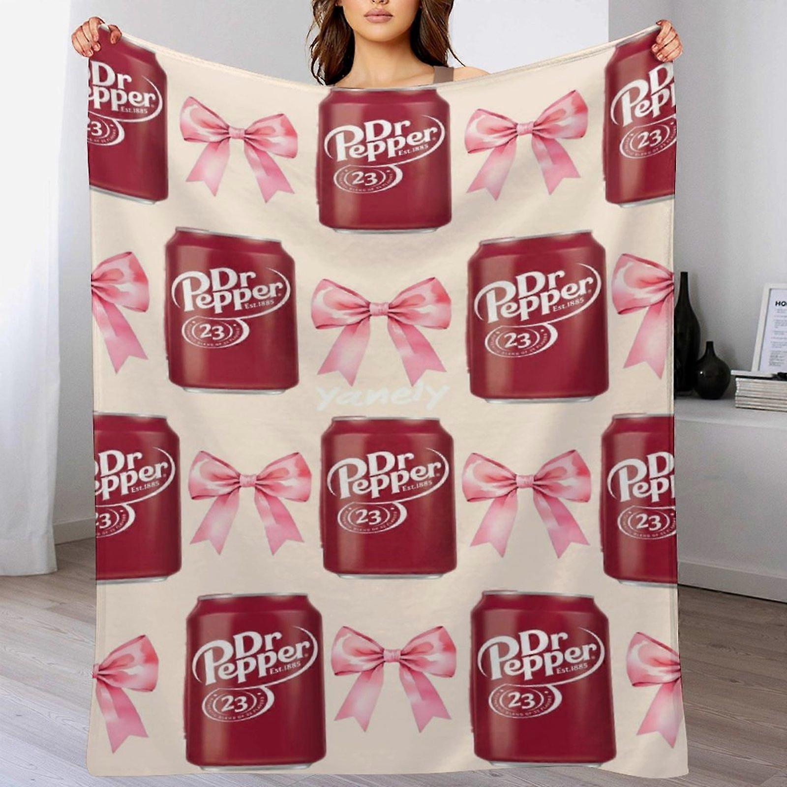 Retro Soda Can & Pink Bow Repeating Pattern Graphic Print Fleece Blanket, Soft Warm Cozy Throw for Sofa Bed Bedroom Living Room Cute Home Decor, Unise