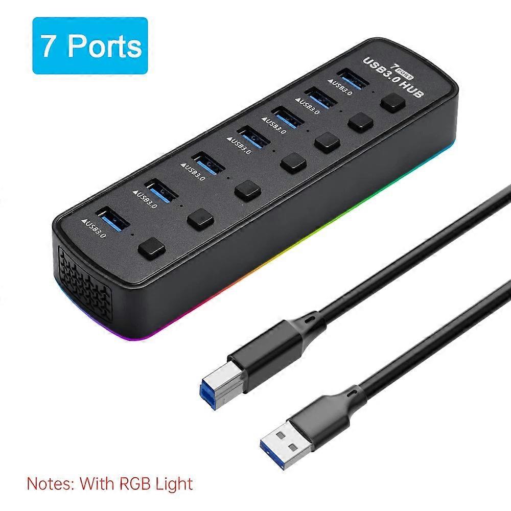 Rgb Usb 3.0 Hub, 7-port High-speed Splitter, 5gbps Data Adapter With On/off
