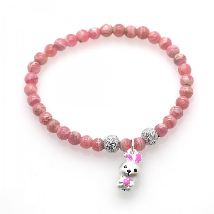 Rhodochrosite & 925 Sterling Silver Bunny Bracelet awo-1