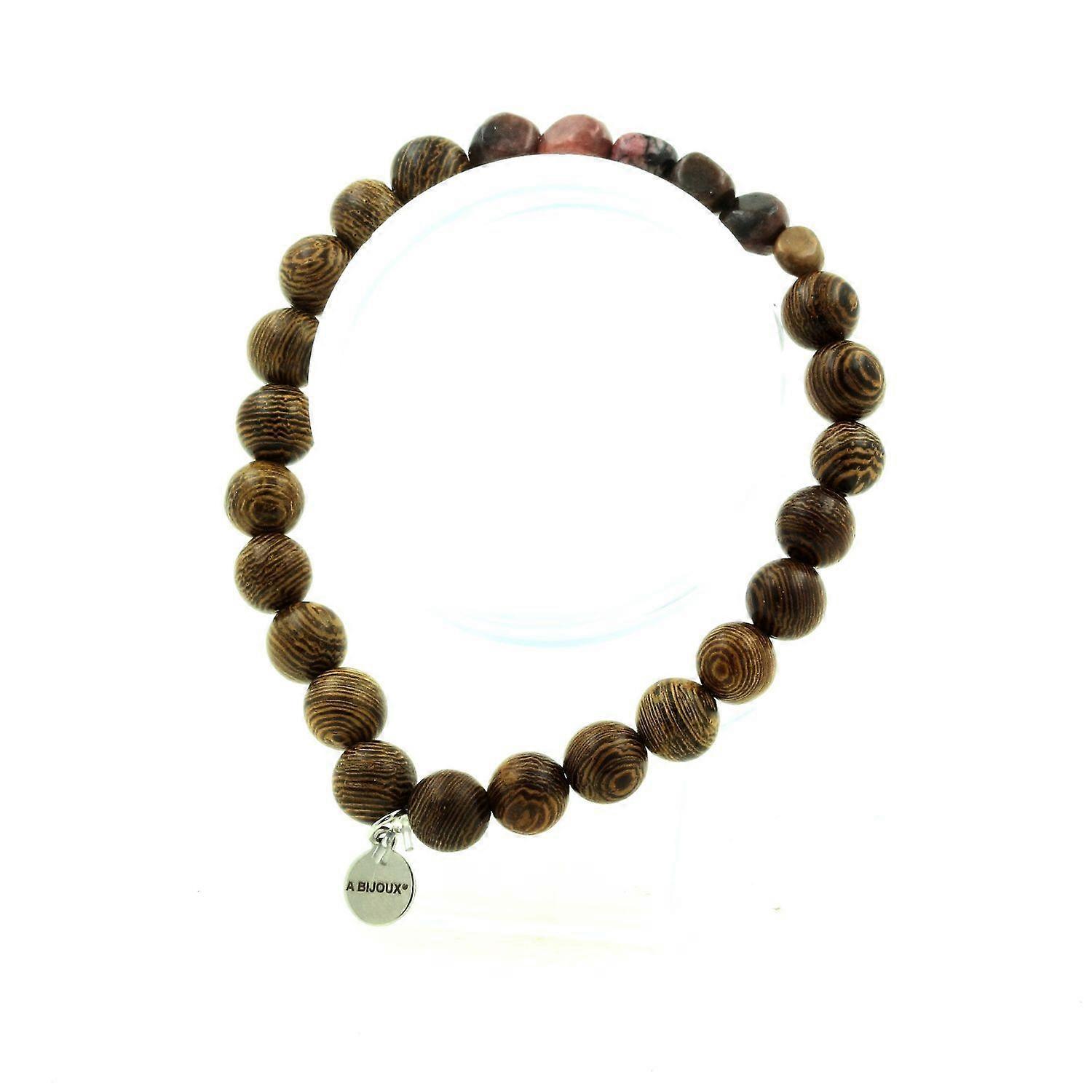 Rhodochrosite bracelet from Brazil + 8 mm wooden beads. Length 19-20 cm. Delivered in a box pouch. Made in France in the A Bijoux workshop. Ref. : SKU050465. Jewelry generally made of precious metal or adorned with precious or semi-precious stones.
