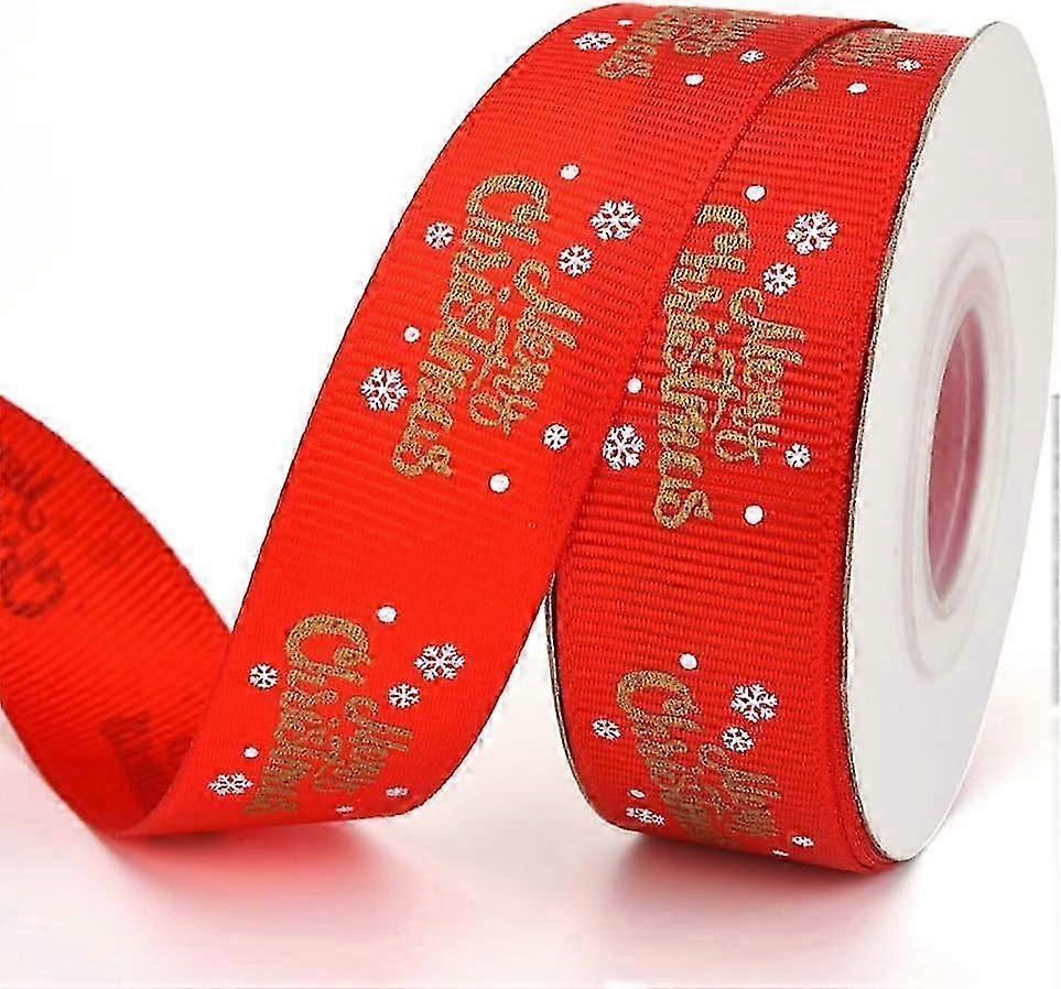 Ribbon with 'Merry Christmas' Design - Perfect for Crafts and Gift Wrapping - Red - 9.1m long and 2cm wide