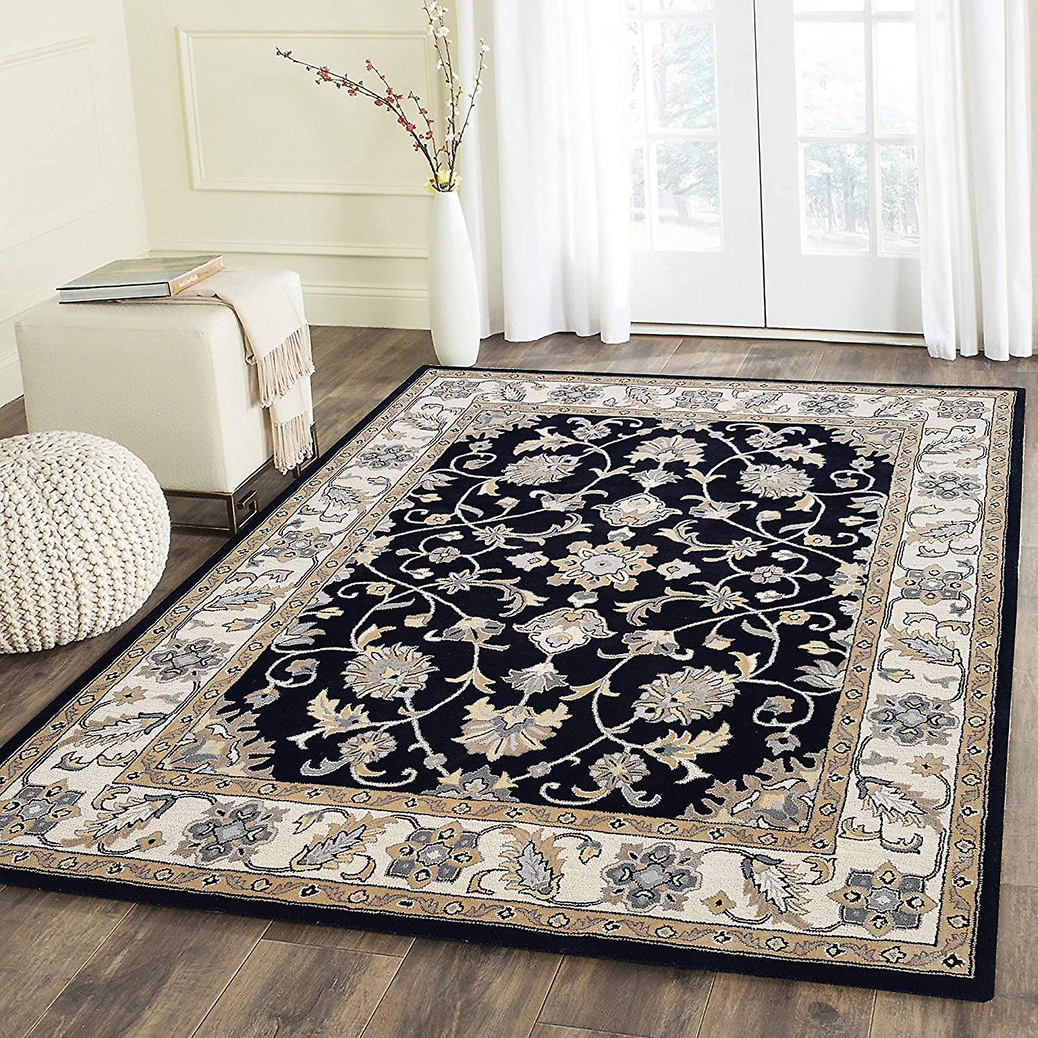 Rida Handloom Persian Design Area Rug Carpet For Bedroom & Living Room, Dining Room & Hall - Black - Beige