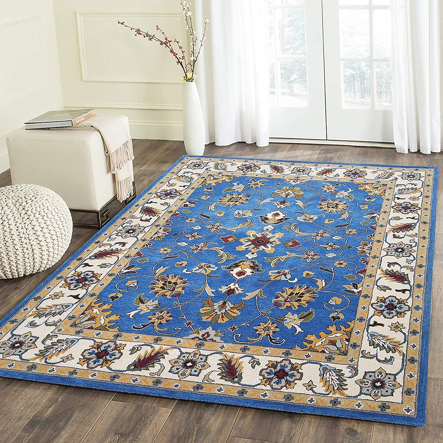 Rida Handloom Persian Design Area Rug Carpet For Bedroom & Living Room, Dining Room & Hall - Blue.