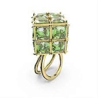 Sormus 17mm valkoisilla lasikivillä, vihreäemaloidut pinnat, kullattu, sormuskoko 50