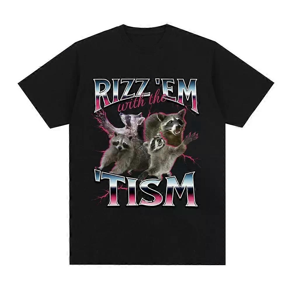 Rizz Em with The Tism Autism Racoon Tshirt Summer Casual Fashion Short Sleeve T-shirt Women's T-shirt
