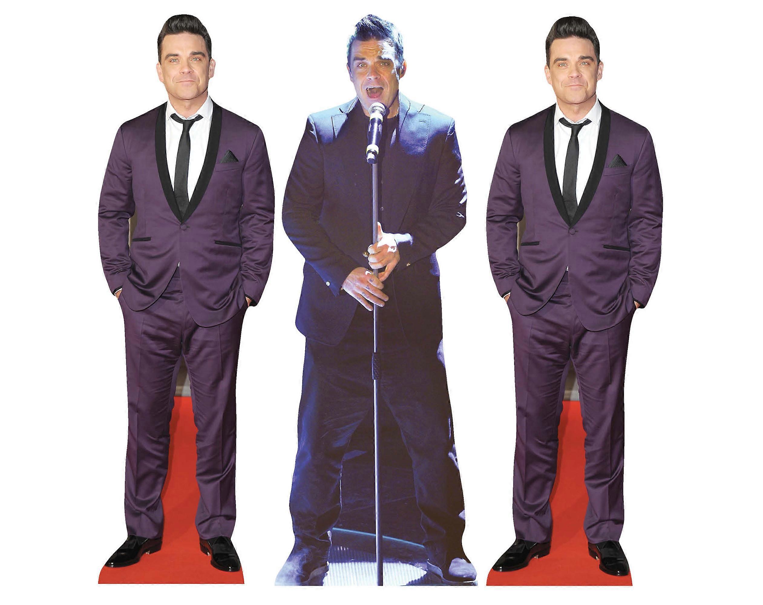 Robbie Williams Table Top Cardboard Cutouts Pack of 3 Mini Standees This pack contains 3 x Robbie Williams shelf toppers, all at 31cm tall   Product Features: • 3 desk top cardboard standees• Made in the UK• Perfect for events, birthday and themed parties, weddings and children's events• 2D photo quality cardboard cutout manufactured from high quality card• Supplied with mini cardboard stands• Great fun at parties and events and perfect for memorable photo opportunities