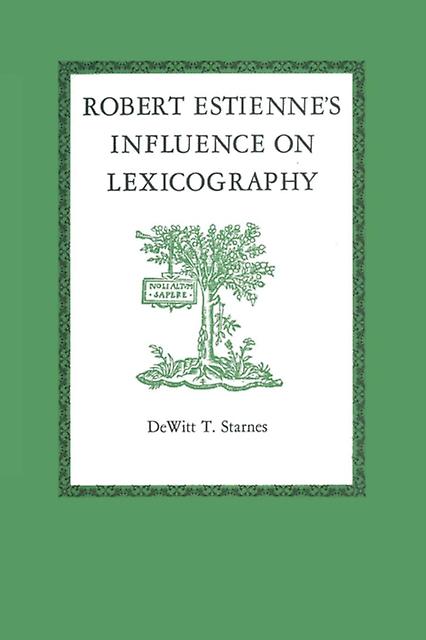Robert Estiennes Influence On Lexicography by DeWitt T. Starnes Paperback Book