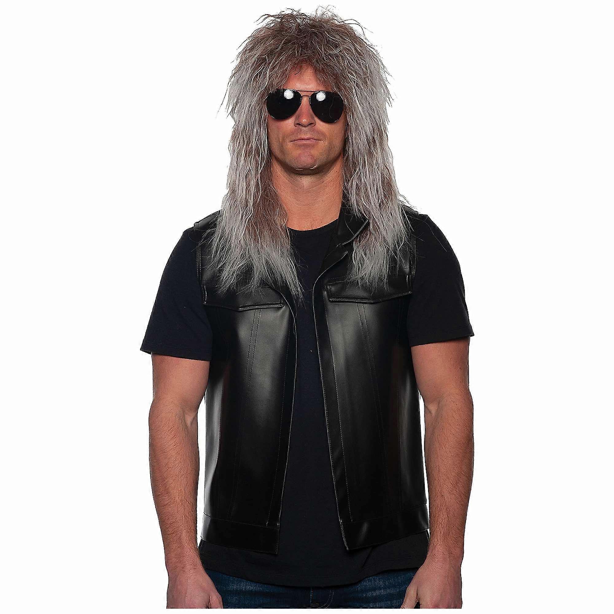 Rocker 80s Rockstar Brown Grey Unisex Adult Mens Womens Costume Wig