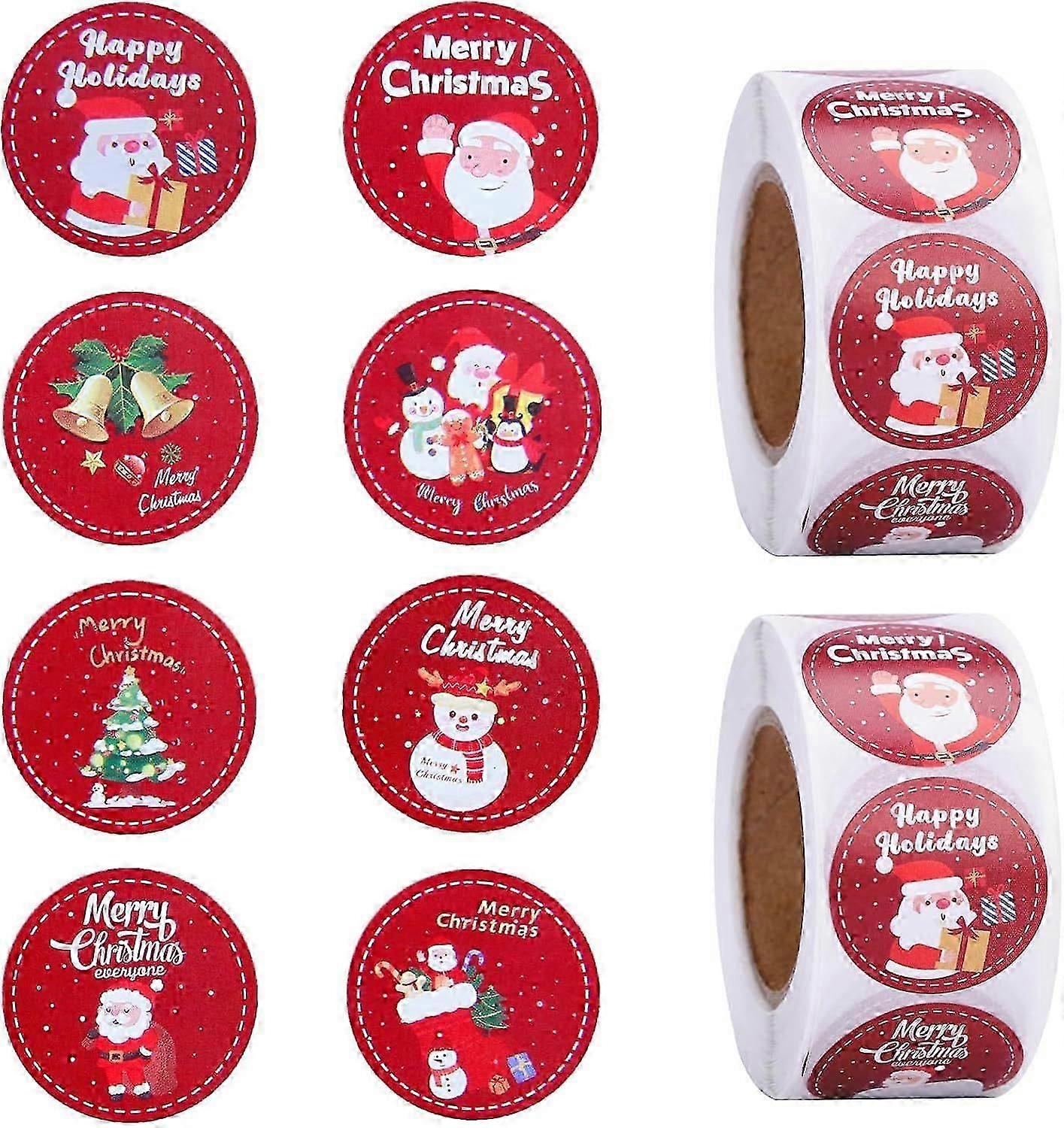 Roll 1000 PCS Christmas Stickers, Christmas Stickers, 2 Rolls Round Christmas Stickers, Adhesive Christmas Labels, 8 Styles Christmas Gift Tags for DI