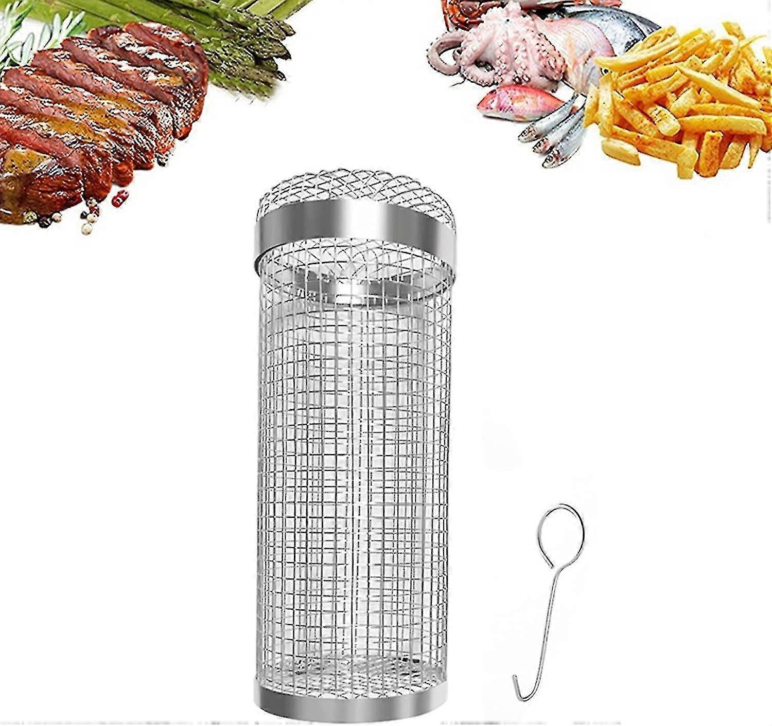 Rolling Bbq Basket Round Stainless Steel Bbq Grill Mesh,portable Outdoor Camping Barbecue Rack For Vegetable,fries,fish