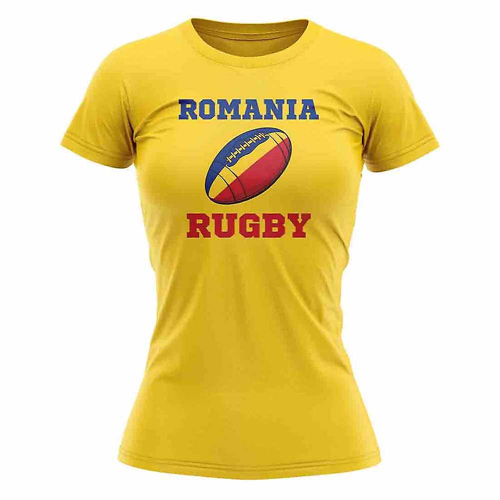 Romania Rugby Ball T-Shirt (Yellow) - Ladies