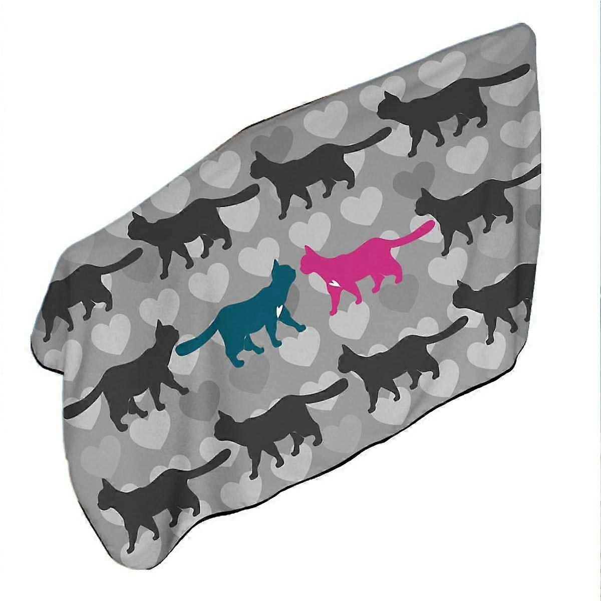 Romantic Cats Hearts and Cat Silhouettes Microfiber Beach Towel