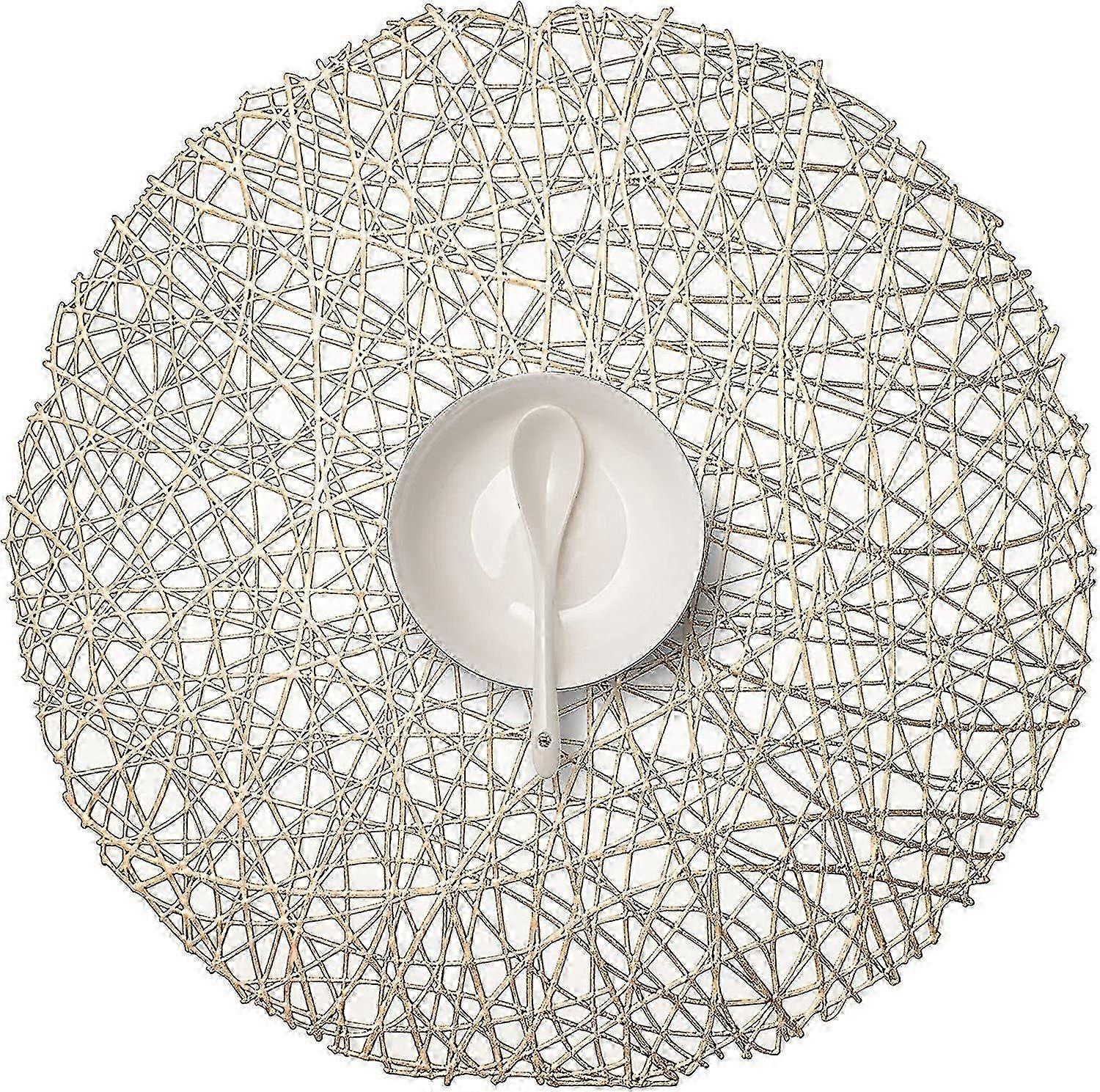 Round Metallic Vinyl Placemat Set Of 12 15 Inch Hollow Out Heat-resistant Shining Table Mat Decorative Gift For Holiday Party Wedding(nest Gold, 12pcs