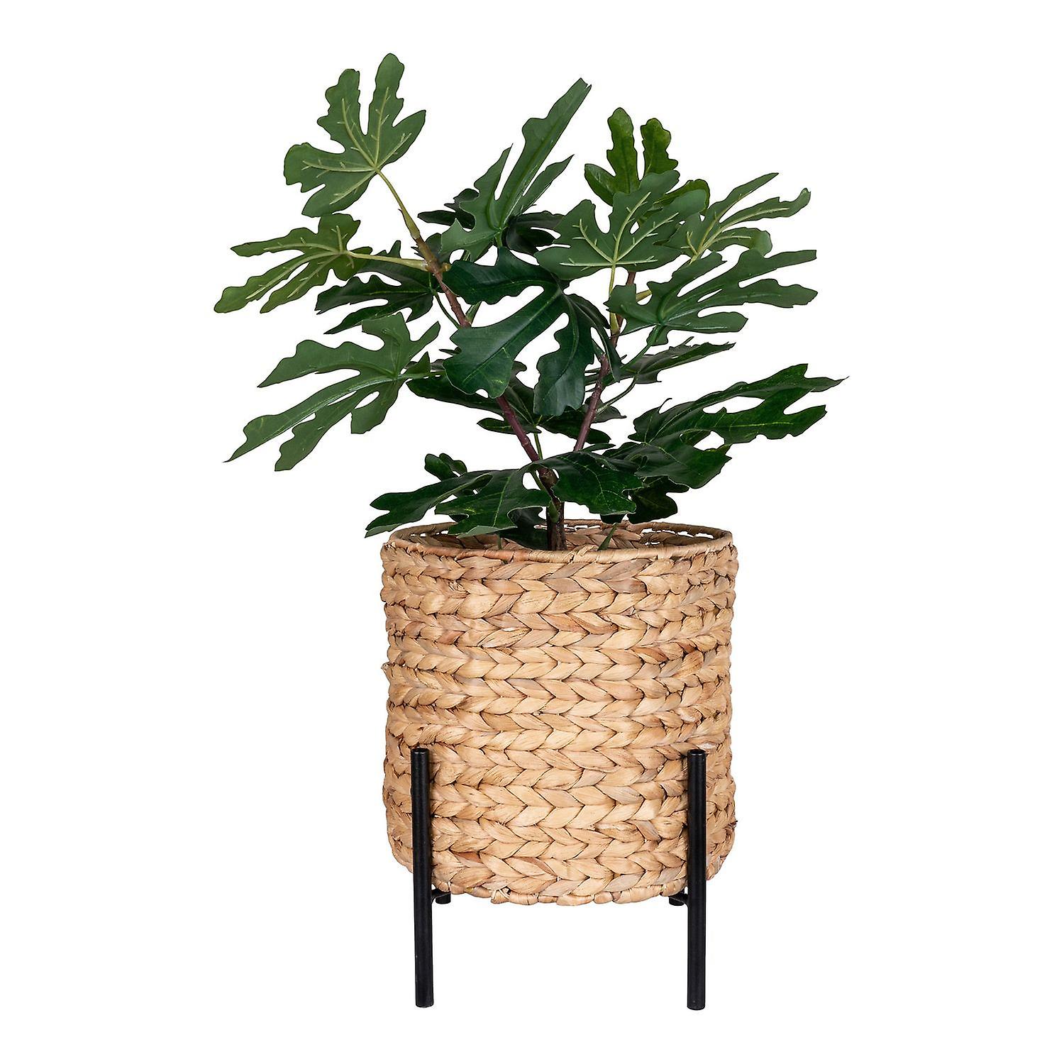 Round planter in brown and black water hyacinth 26.5 x 26.5 x 28 cm