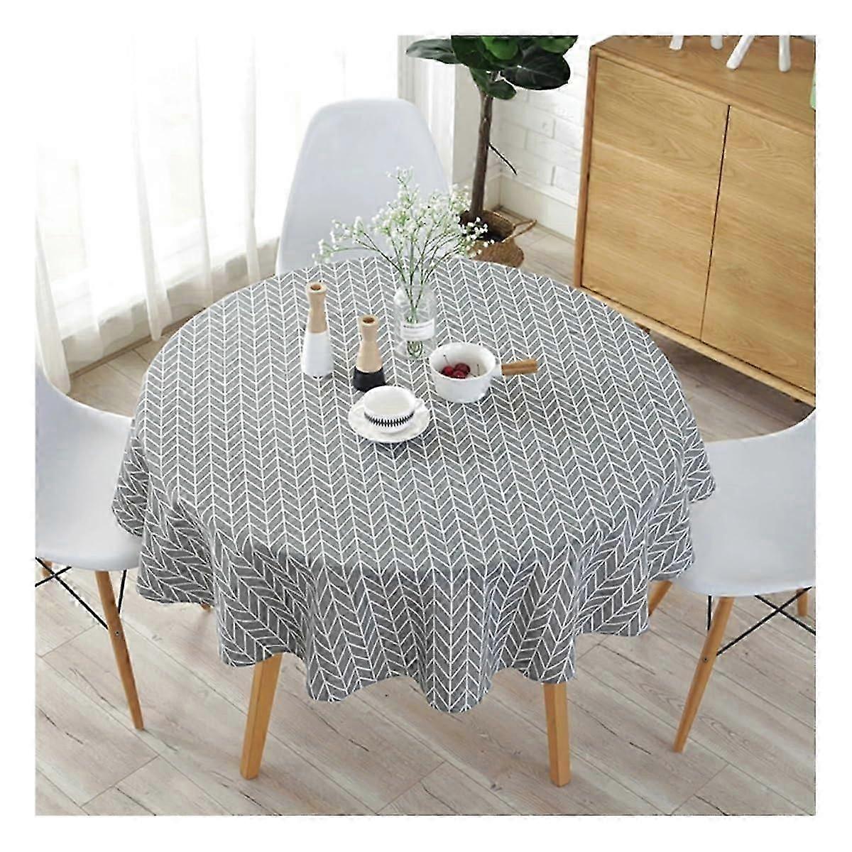 Round Tablecloth 150cm Gray Washable Table Cover For Indoor Holiday Christmas Party Dining Room