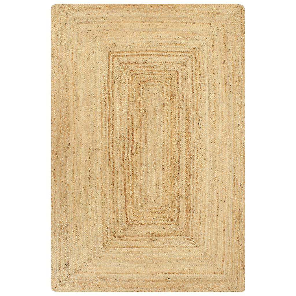 Verleihe deinem Interieur eine natürliche Note mit diesem geflochtenen Juteteppich Dieser optisch ansprechende Teppich ist mit außergewöhnlicher Handwerkskunst handgewebt worden und passt perfekt in deine Wohnungseinrichtung. Aus Jute und Baumwolle geflochten, fühlt sich der Teppich weich an und ist dennoch langlebig und pflegeleicht. Bitte beachte, dass jeder Teppich ein Unikat ist. Aufgrund der Handarbeit können Abweichungen in Farbe und Design auftreten. Die Lieferung erfolgt nach dem Zufallsprinzip, was die Exklusivität und Individualität deines Produkts gewährleistet. Wichtiger Hinweis: Die Teppiche sind für den einfachen Transport gerollt verpackt. Bitte lasse dem Produkt etwas Zeit, um gerade und flach zu liegen. Farbe: NaturMaterial: Geflochtene Jute und BaumwolleAbmessungen: 80 x 160 cm (B x L)HandgefertigtAttraktive Textur