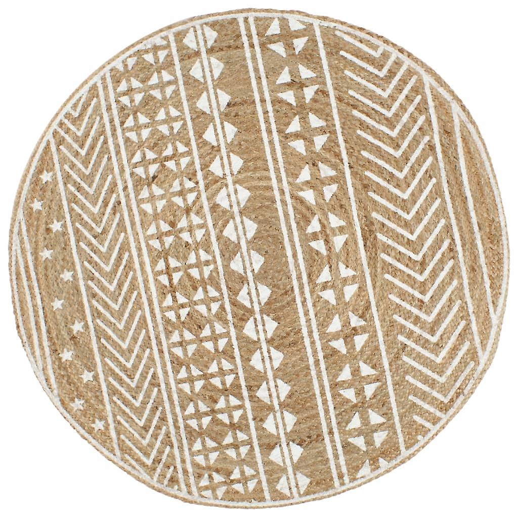Teppich Handgefertigt Jute Weißer Druck 90 cm