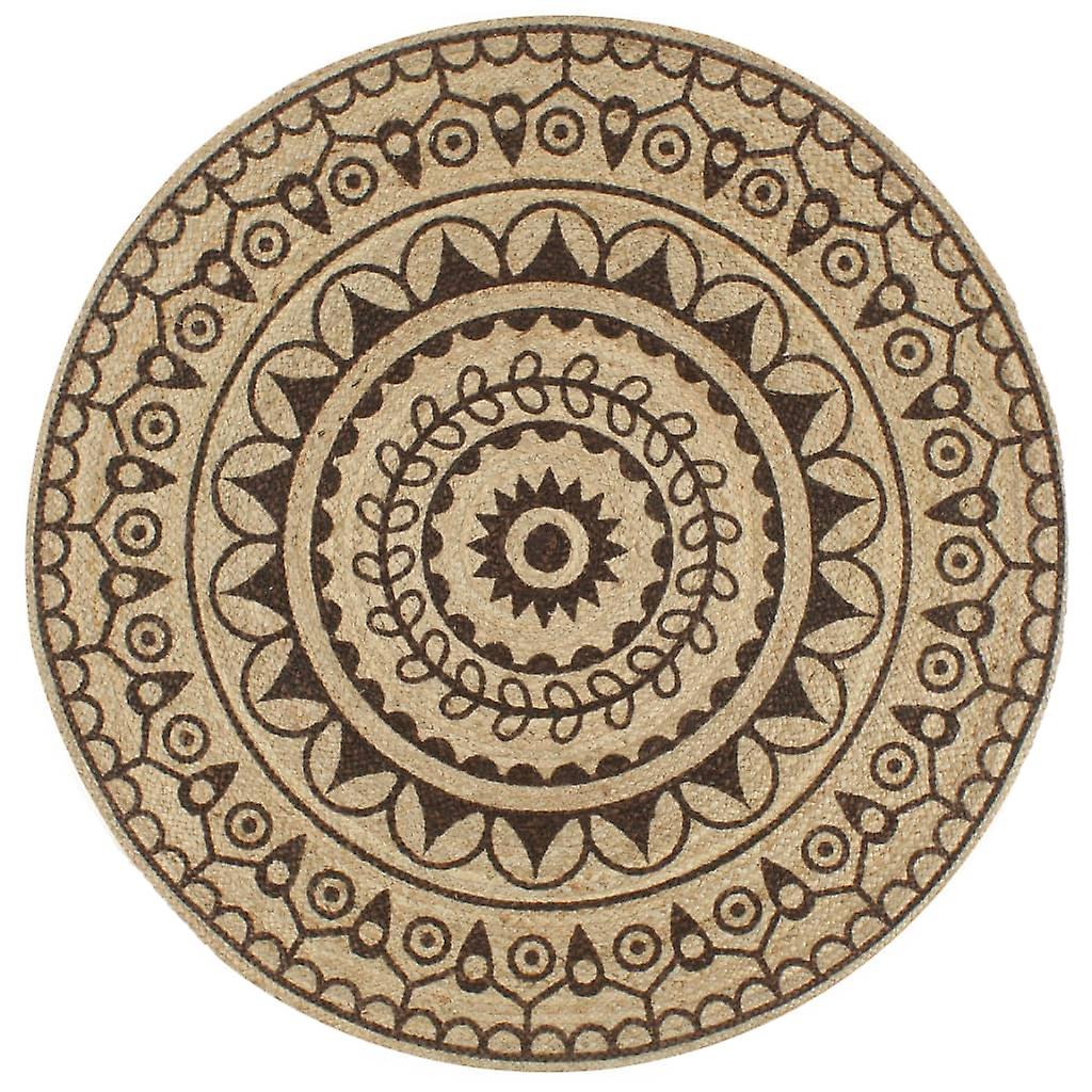 Teppich Handgefertigt Jute mit Dunkelbraunem Aufdruck 120 cm