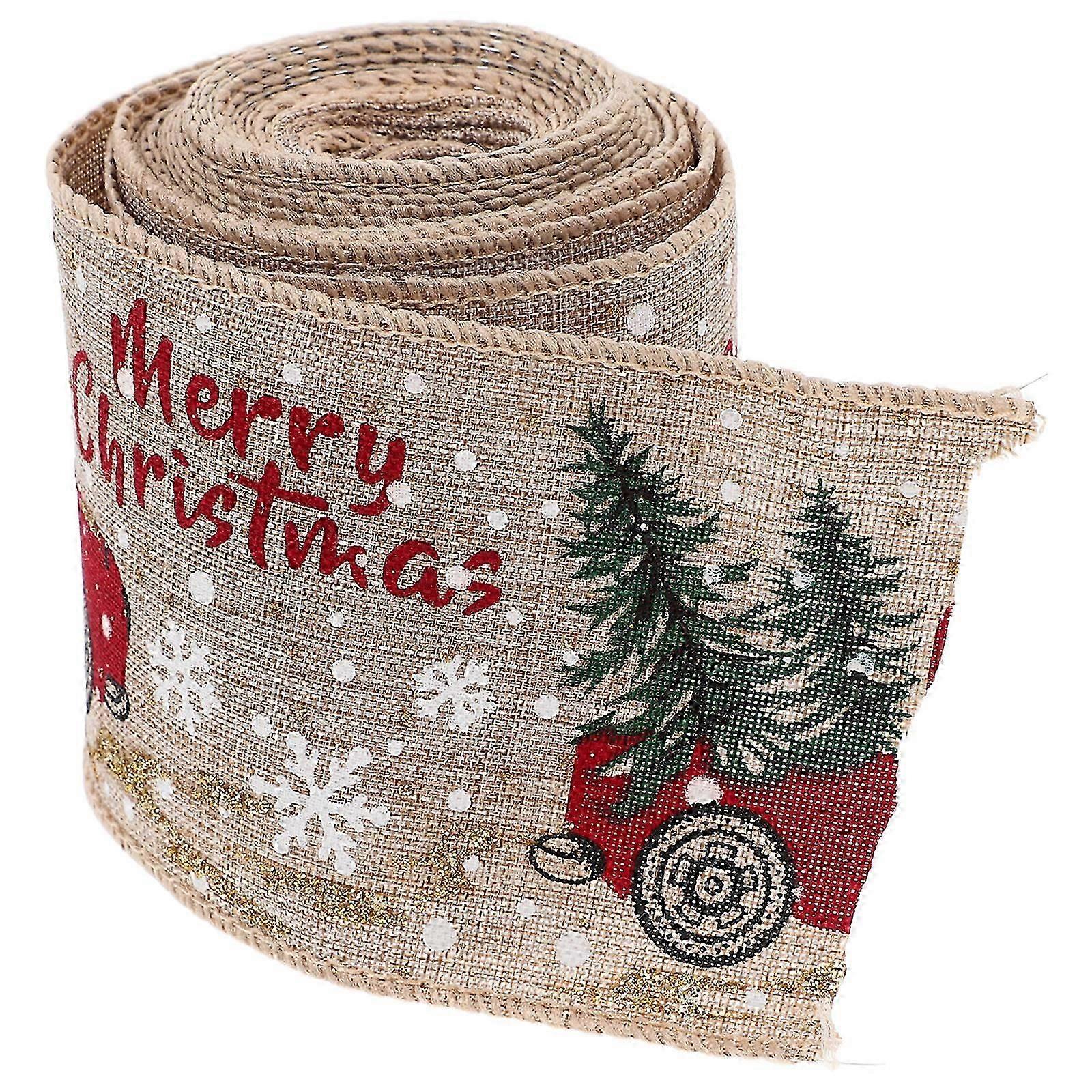 Rustic Linen Print Wired Christmas Ribbon for Gift Wrapping and Holiday Decorations Reusable Craft Ribbon with Easy Shaping Material