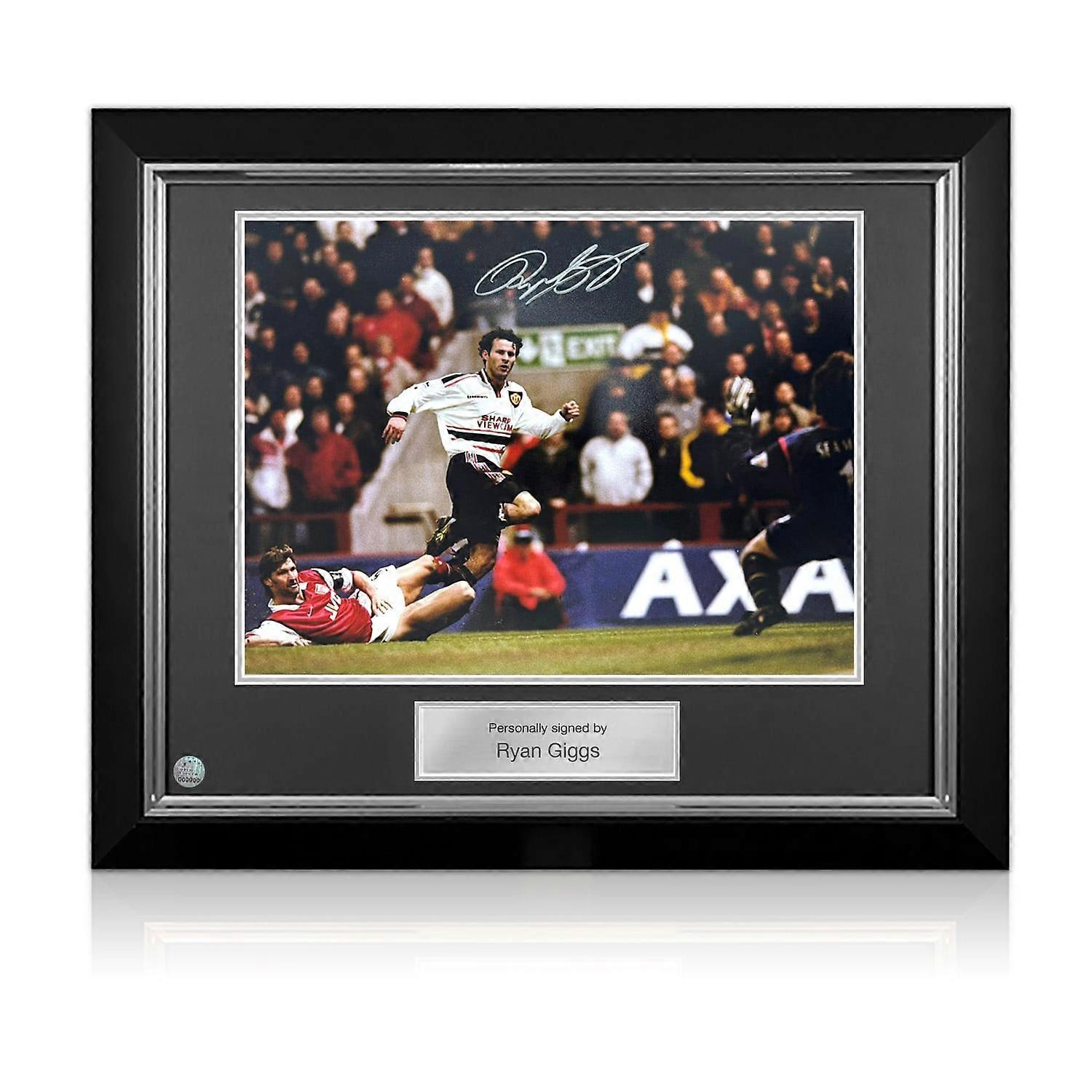 Ryan Giggs Signed Manchester United Football Photo: Wonder Goal (Silver). Deluxe Frame