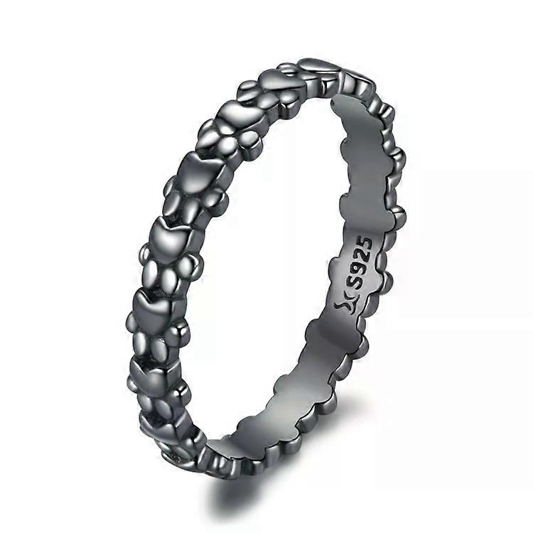S925 Sterling Silver Black Paw Print Ring for Women-Size 6