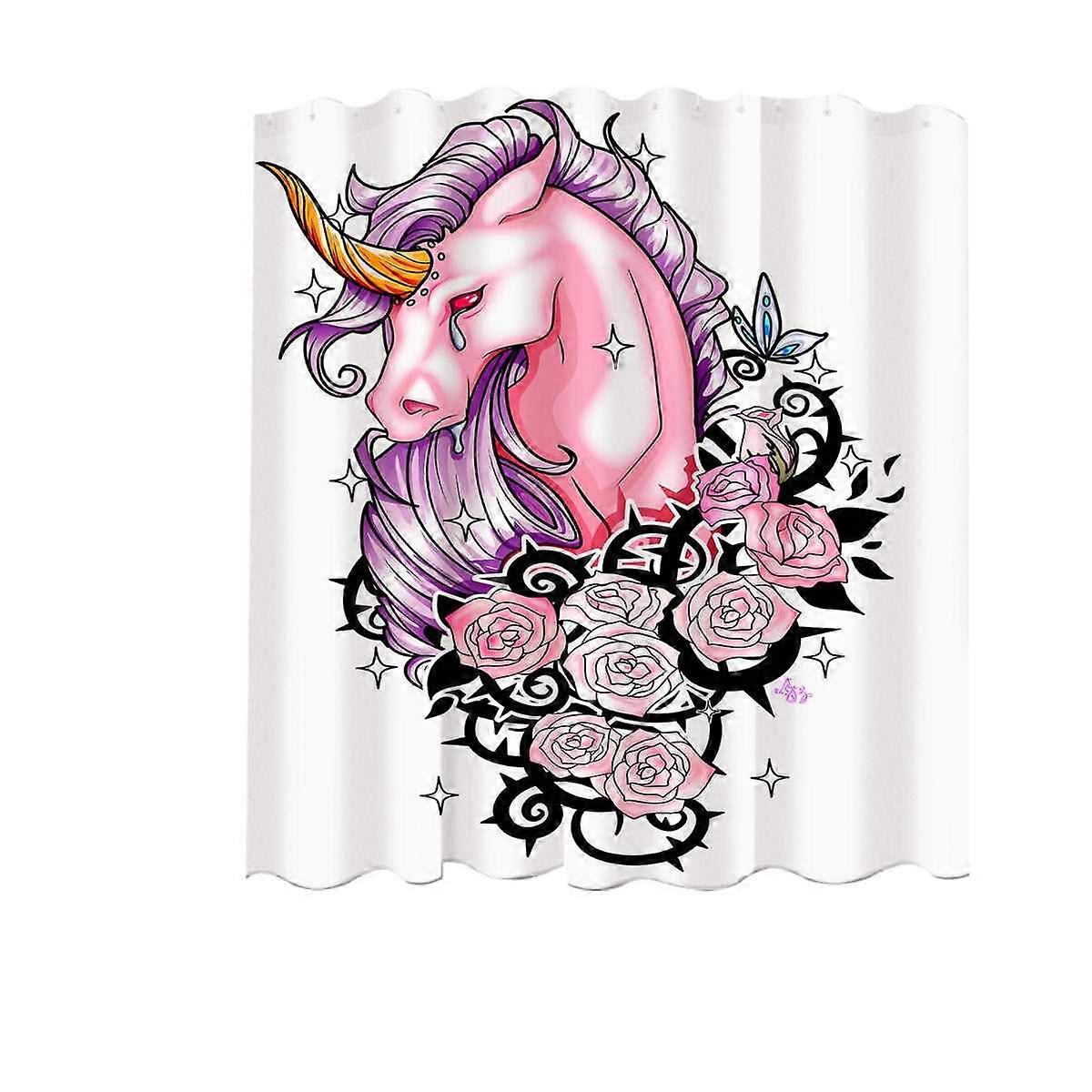 Sad Pink Unicorn and Roses Shower Curtain