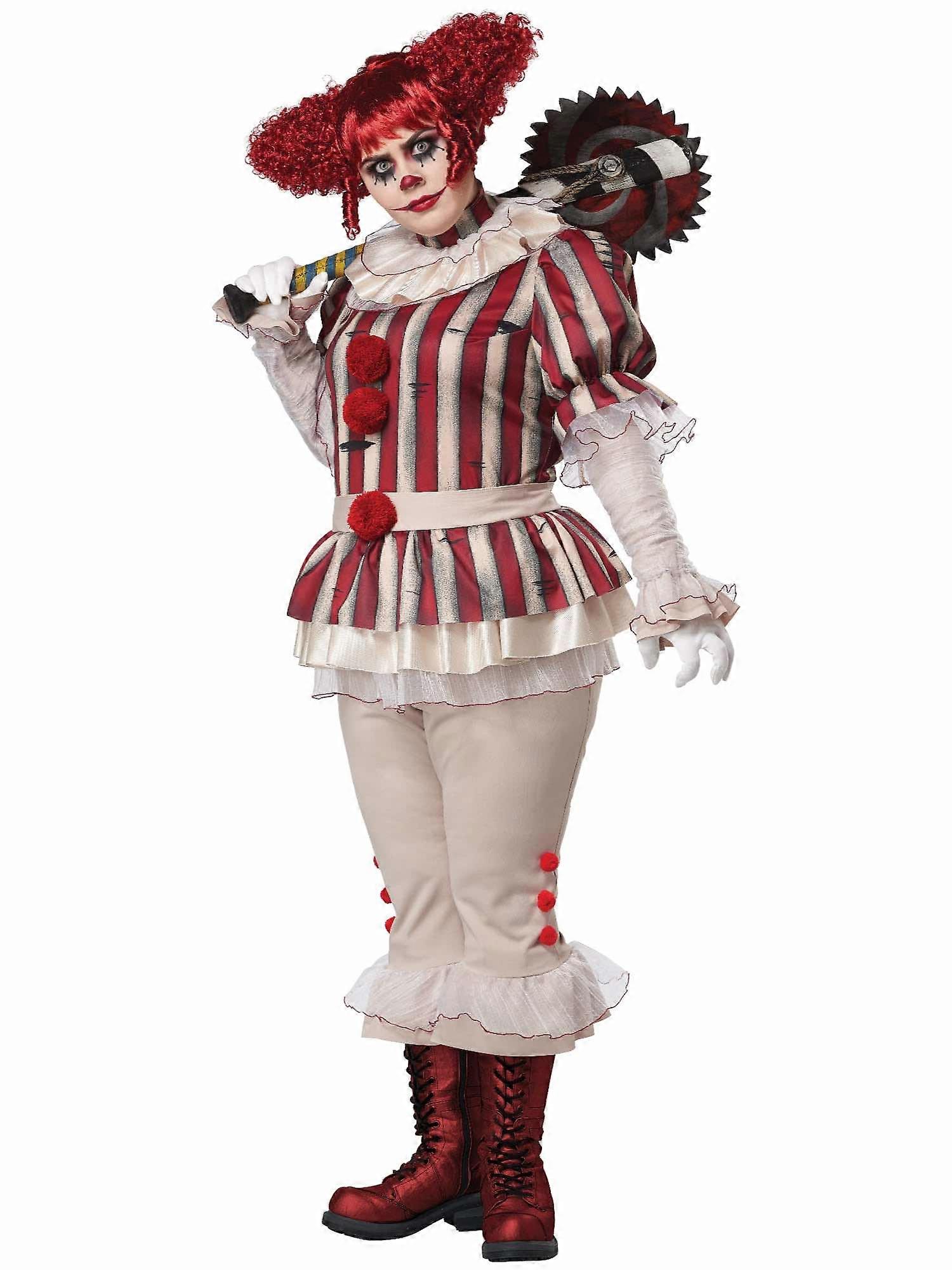 Sadistic Clown Evil Joker Horror Scary Halloween Adult Womens Costume Plus
