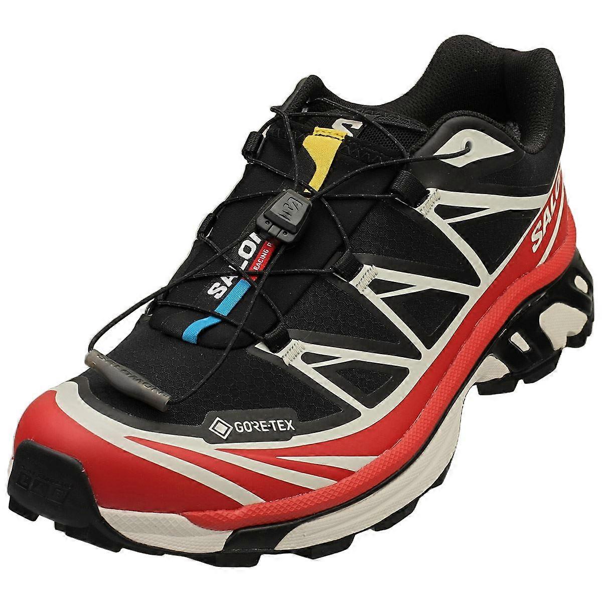 Salomon XT-6 GTX running trainers embody adventure readiness in a striking Black Flame Scarlet palette. These unisex shoes offer a compelling blend of durable synthetic and breathable textile across their upper, ensuring both protection and comfort on varied terrain. A textile lining cradles the foot while a comfortable textile insole adds another layer of plushness. Built for performance and style the robust rubber sole guarantees exceptional grip and stability wherever your journey takes you. Secure and easily adjustable with a classic lace-up fastening the XT-6 GTX delivers a dependable experience reflecting Salomon�s commitment to exploration.