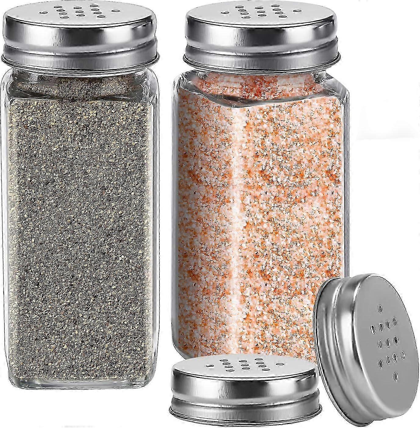 Salt and Pepper Shakers Set Glass with Stainless Steel Lids - Farmhouse Kitchen Decor Spice Jars