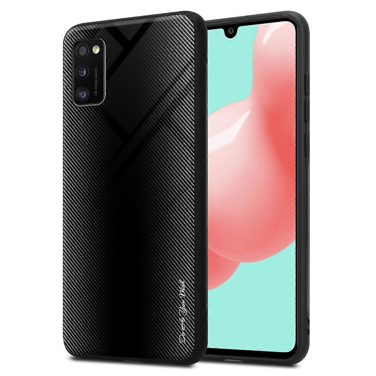 Samsung Galaxy A41 Hülle TPU Schutzhülle - Rückseite mit Schutzglas - Gestreiftes Glas