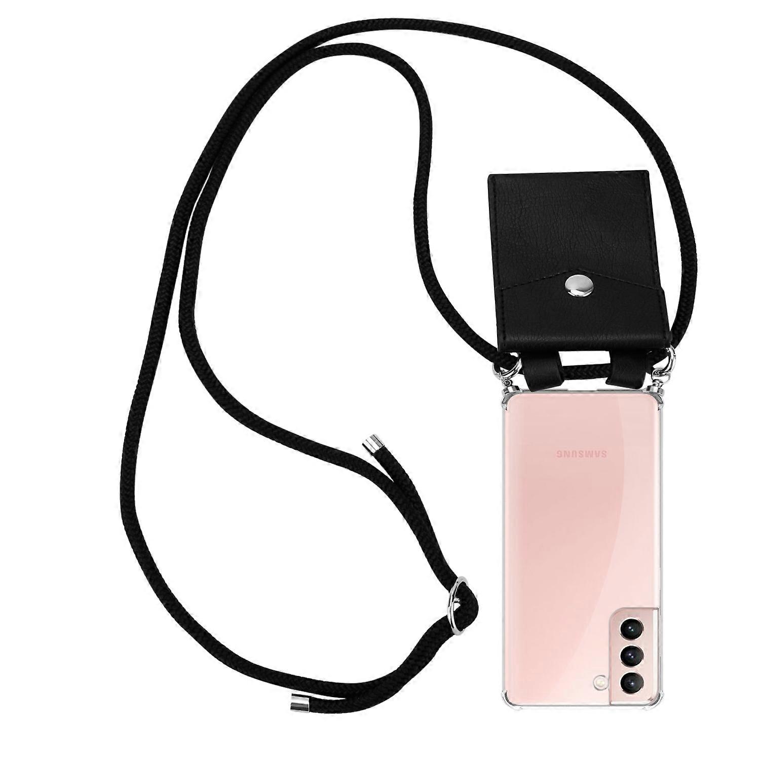 Cadorabo Umhänge Handyhülle aus transparentem TPU Silikon mit Kordel Schnur und kleinem Etui für Karten und Geld