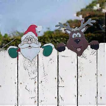 Santa Claus Elk Fence Peeker Christmas Outdoor Festivity Xmas Decor