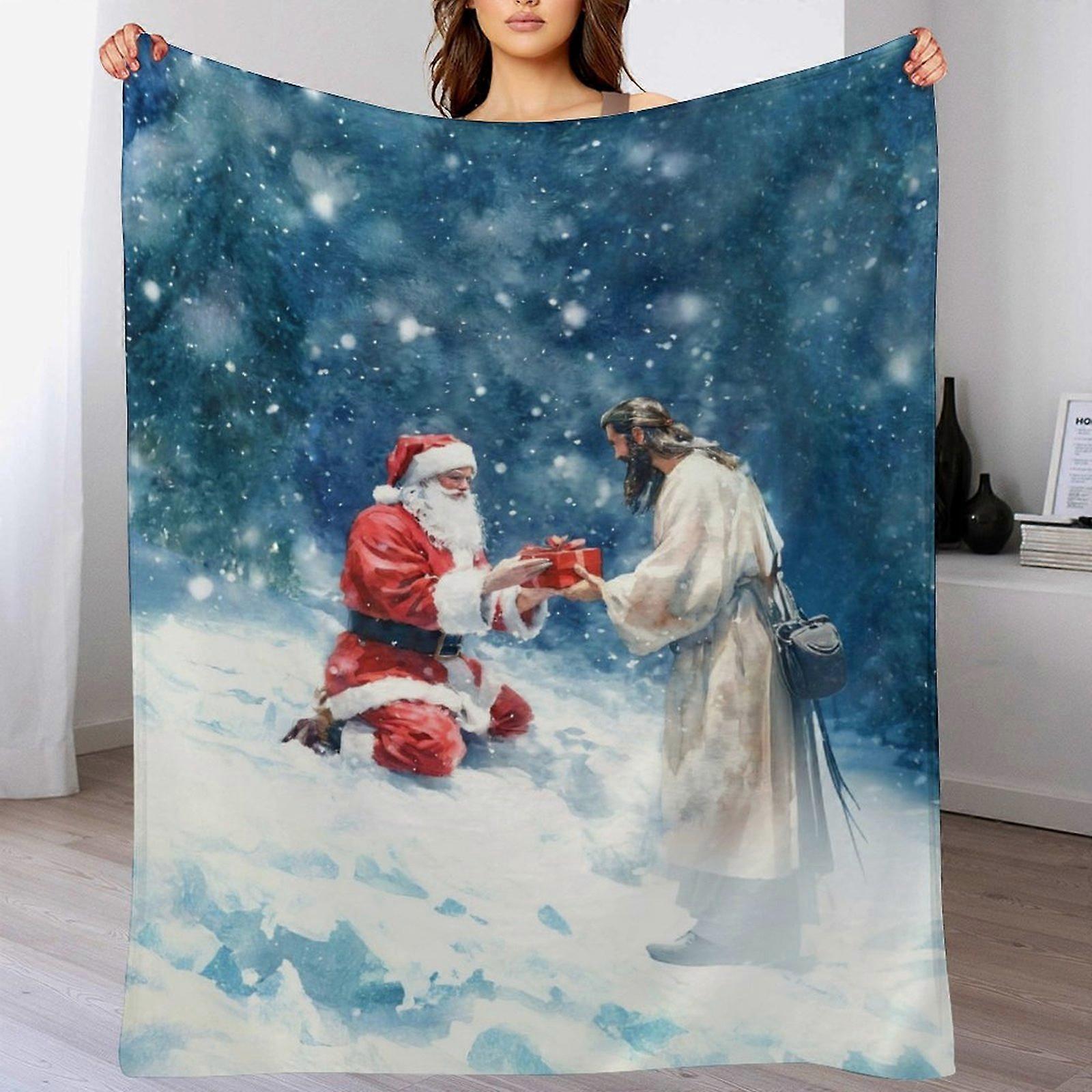Santa Claus & Figure Gift-Giving Print Flannel Blanket - Cozy Warm Throw | Festive Christmas Gift for Families