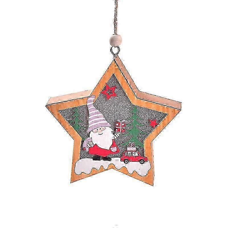 Santa Claus Pendant, Christmas Ornament Xmas Wooden Hanging Light (Star type grey cap)
