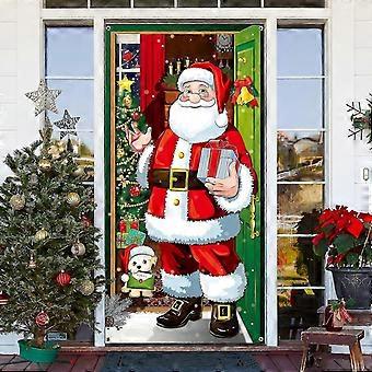 Santa Door Cover Christmas Door Banner Hanging Santa Backdrop Banner For Winter Holiday Decoration Front Door Home