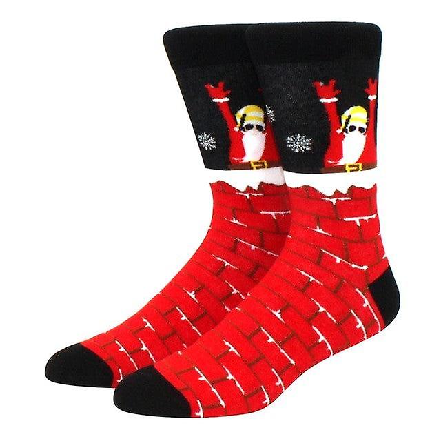 Santa Slipping Down the Chimney Socks (Adult Large - Men's Shoe Sizes 8-12)